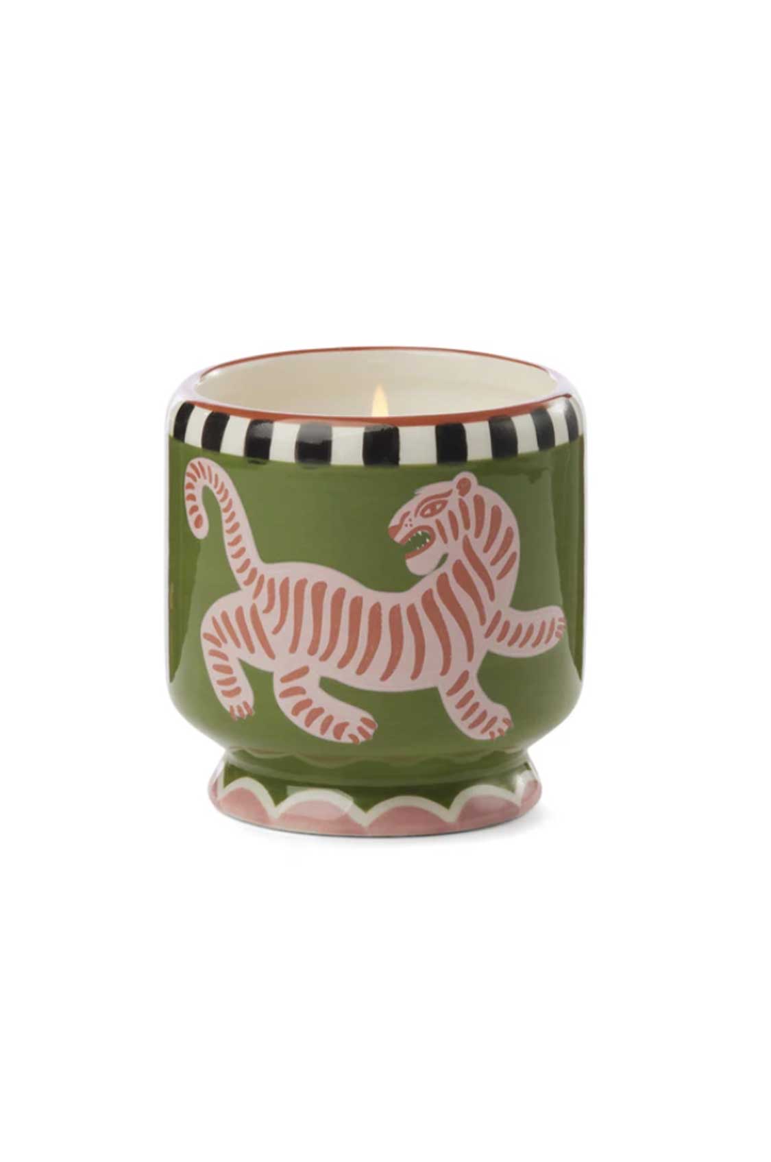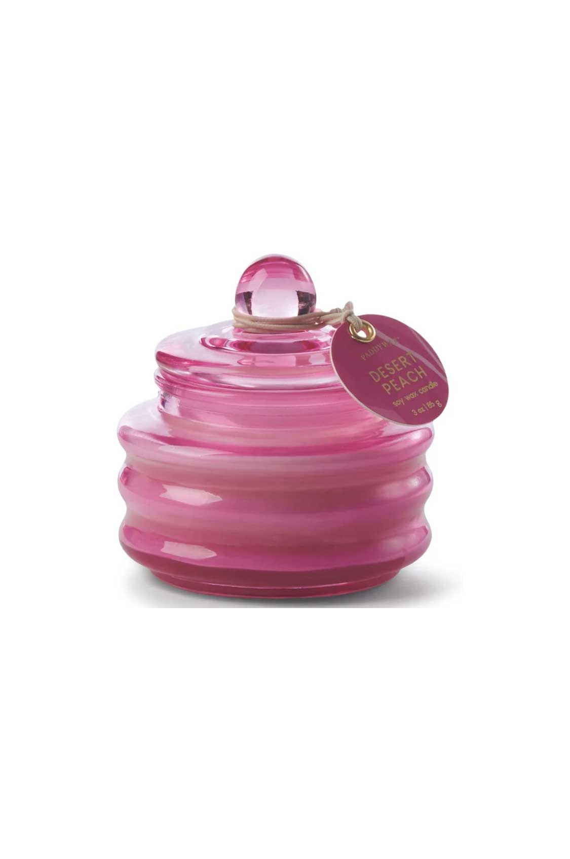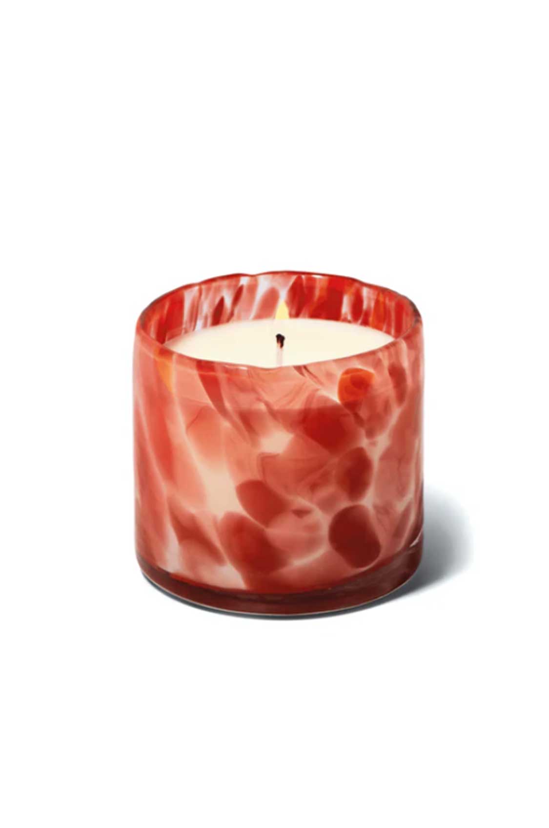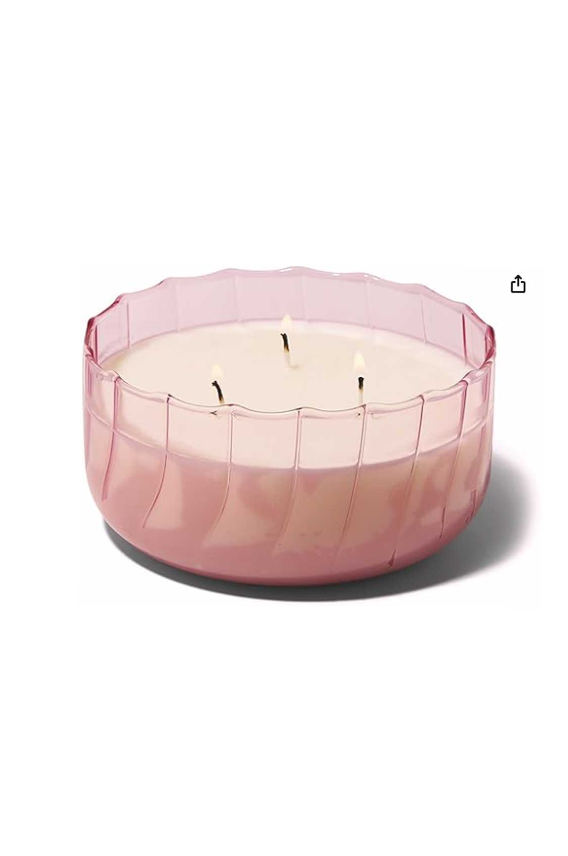 Candela in vetro rigato lilla con cera di soia, fragranza iris salato.